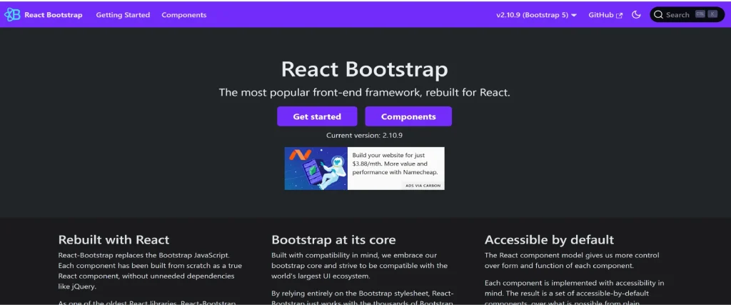 While Bootstrap is widely loved for its responsive web components, it can sometimes impact performance due to unnecessary libraries like jQuery. React developers who are seeking to integrate Bootstrap’s popular components without compromising performance, React Bootstrap is the ideal solution.